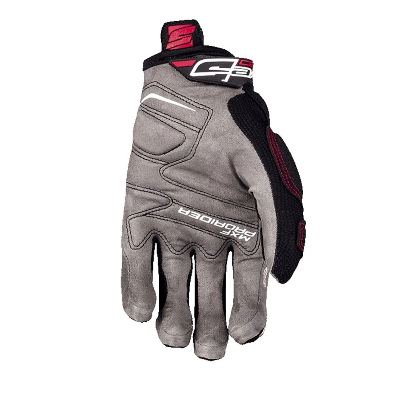 This is the latest generation of motocross gloves built based on the experience of MX or Enduro Grand Prix FIVE riders. Even more lightweight, thin, elastic, and breathable in their โSโ version than the original MXF PRORIDER. The topside is made from a single piece of YP Mesh. Finger contours are in small Airmesh. Everything is done to create unparalleled fit. Finger protection and Sonicโข FIVE logo. The thumbs feature comfort gel at grip contact points in order to reduce the risk of blisters. Gel pad protection at palm to dampen shock and impact in a fall. Palm made of Nanofrontยฎ, a material coming from Japan introduced by FIVE on an MX glove, offering an unrivaled level of control feel and grip. Lycraยฎ gusset for comfort under the TPR and Velcroยฎ adjustment tab, to prevent dirt from getting inside the glove. The ultimate in MX gloves.