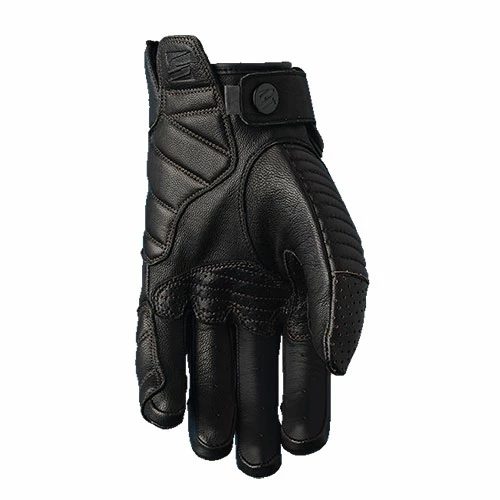 100% full-grain leather glove with a distinct personality, beautifully combining quilted and perforated leathers, and allying design with protection. It features thick leather reinforcements overstitched on the edge of the hand, which are not only decorative, but also aimed at protecting the riderβs hand in the event of a fall. Closure via a leather tab with a press-stud embossed with FIVE. Through its unique character, its superb finish, and its quality materials, it simply breathes vintage culture.