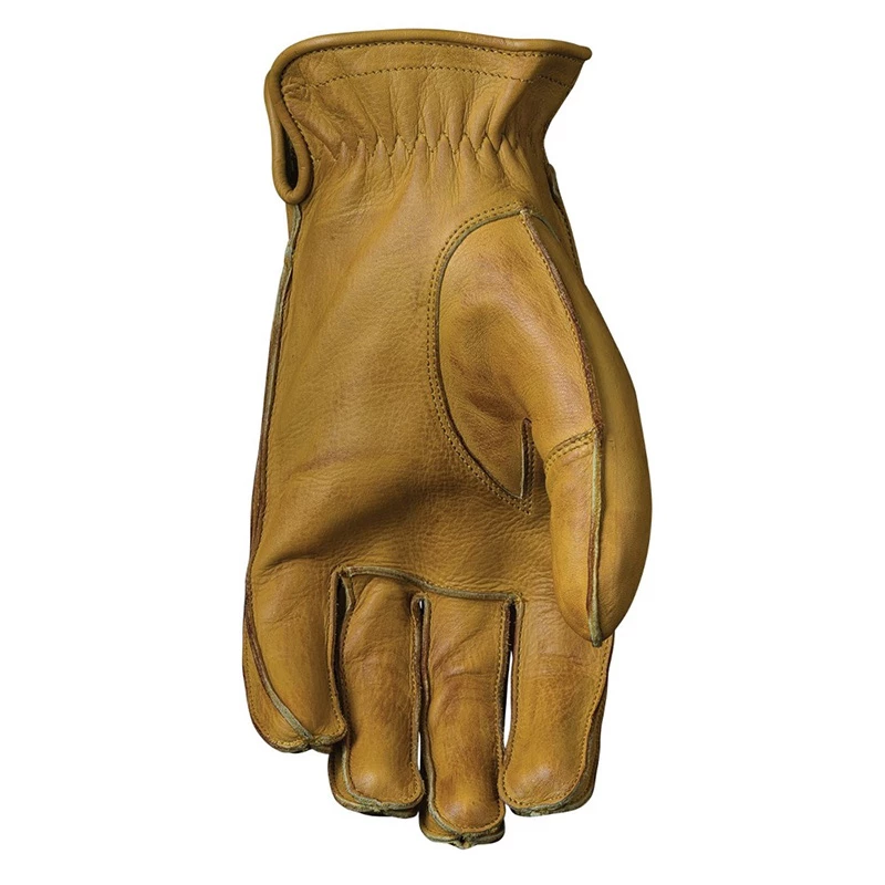 The IOWA 66 is designed to reflect the very essence of a custom-vintage glove. Fans of custom style sometimes convert work gloves for riding use, but the problem is that they donβt fulfil any of the essential characteristics needed when driving a motorcycle, either in terms of comfort or safety. FIVE now offers a style inspired by these gloves that are highly popular with custom addicts yet featuring specs that are unique to steering a two-wheeled vehicle. And this makes all the difference. Crafted in particularly durable full-grain cowhide that offers a suppleness thatβs rare for this type of glove, the IOWA 66 stands out from the pack with its extreme comfort and a fit thatβs head-and-shoulders above the rest, notably due to its thumb construction inherited from our experience in racing. Beneath its seemingly minimalist appearance, it features all the best that FIVE has to offer in terms of quality fit and control sensitivity, as well as the attention to detail typical of our designs. Everything has been envisioned for this apparently minimal glove to offer you maximum enjoyment (and authenticity) when youβre at the controls.